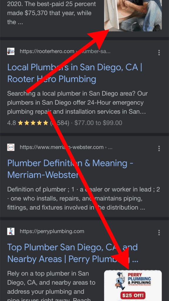 Updated for 2024: Astute searchers have increasingly noted Google SERPs adding images next to regular organic listings, especially in mobile search. Here are two examples: