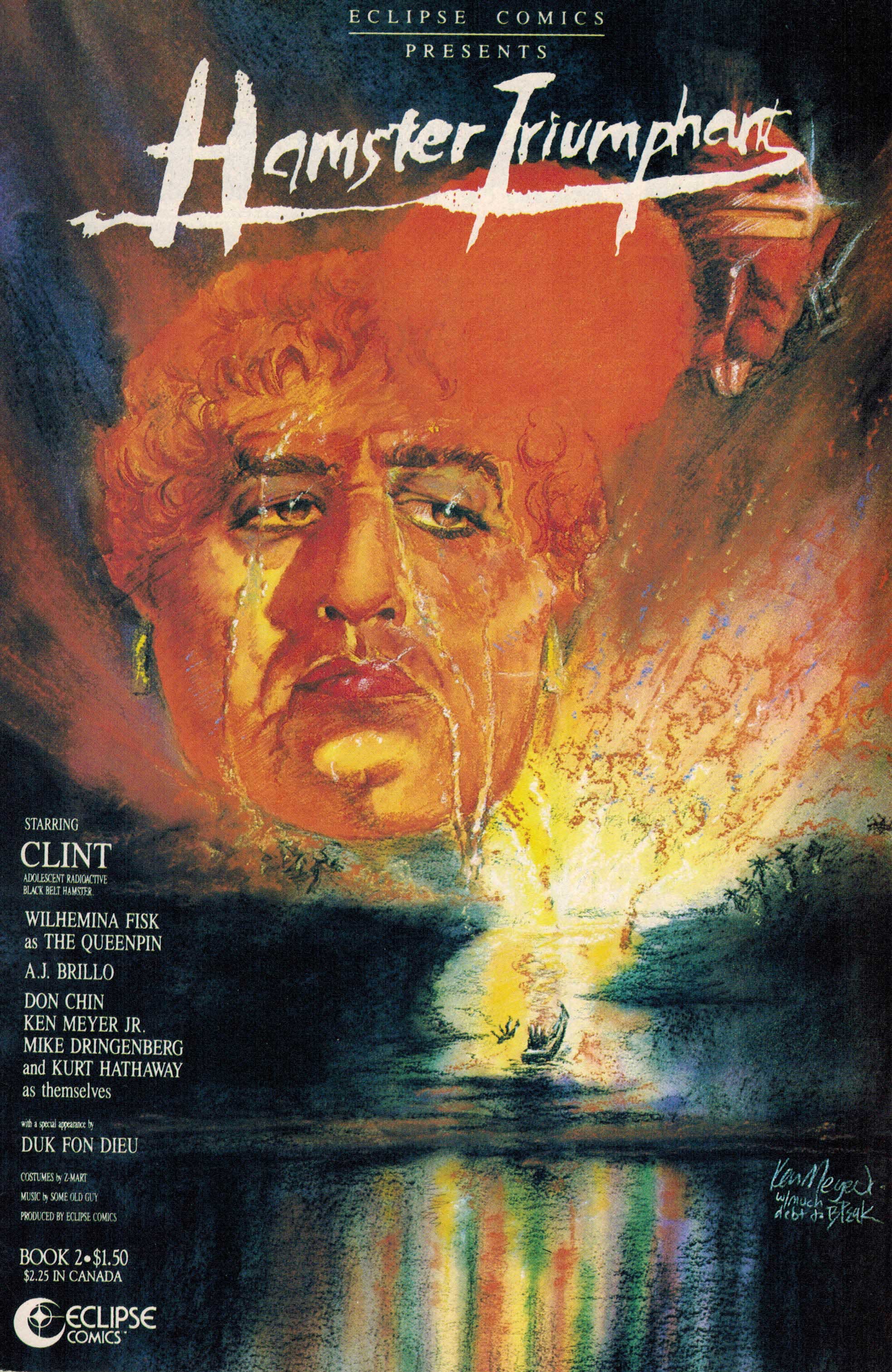 As if these animals weren’t inbred enough, here’s another crossover. Oh, look! It’s Eclipse Comics’ Adolescent Radioactive Black Belt Hamsters making a guest appearance with our titular brain damaged quantum tunneling marsupials. Don’t you love it when indie outfits collaborate? I do. Oh wait, that’s independent brewery collabs I’m thinking of.
