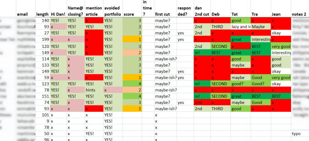 The two people earning a perfect score from my first round of screening made it through. And somebody with a 50% made it through too.