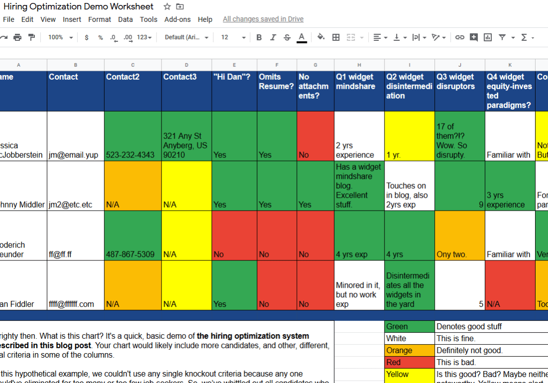 (Or: How I Learned to Hire Smarter) Do you think you're a good judge of character? Studies show that not only do we suck at judging other people's authenticity, we also vastly overestimate our ability to sniff out the fakers. Leaning on AI-assisted hiring help is similarly troubling because of biases in its training data; … Continue reading Improved System for Screening Job Applicants